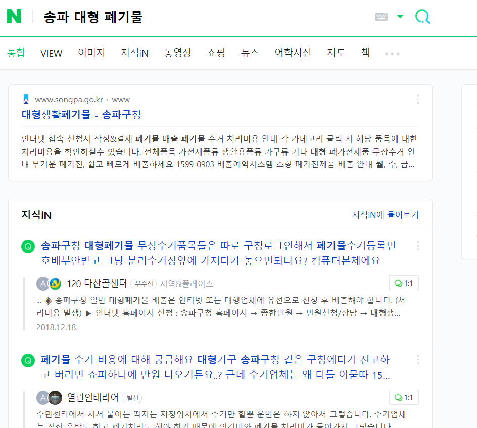 송파 대형 폐기물을 검색하니 아래와 같이 송파구청 사이트가 바로 검색이 되서 들어갔습니다