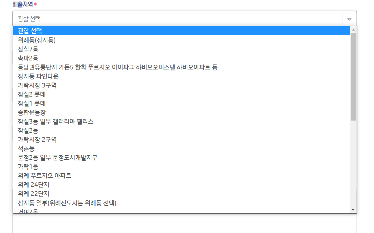 집에서 최대한 가까운 지역으로 선택을 해줍니다
