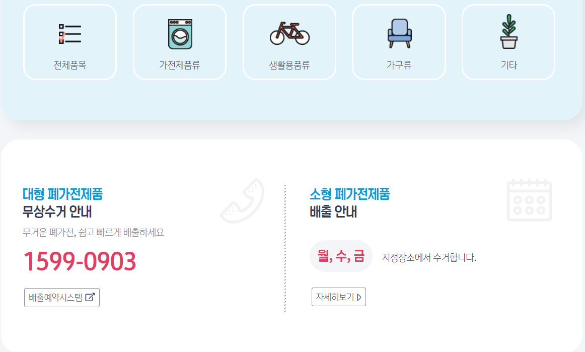 최근 온라인으로도 대형 폐기물 처리가 가능하다고 해서 집에 가전 제품을 버릴 겸 찾아봤습니다