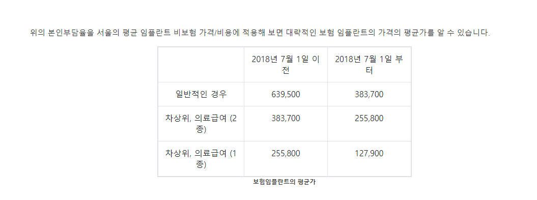 그리고 바로 아래 보시면 임플란트 평균 비용이 나오는데 이걸 보셔야 어느정도 비용이면 임플란트를 할 수 있는지 자세히 알 수 있습니다