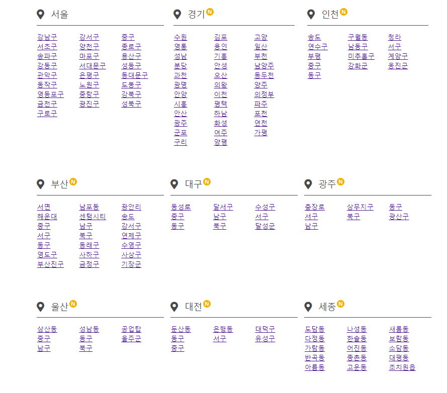 이걸 클릭하면 서울 뿐만이 아니라 전국 모두 나옵니다