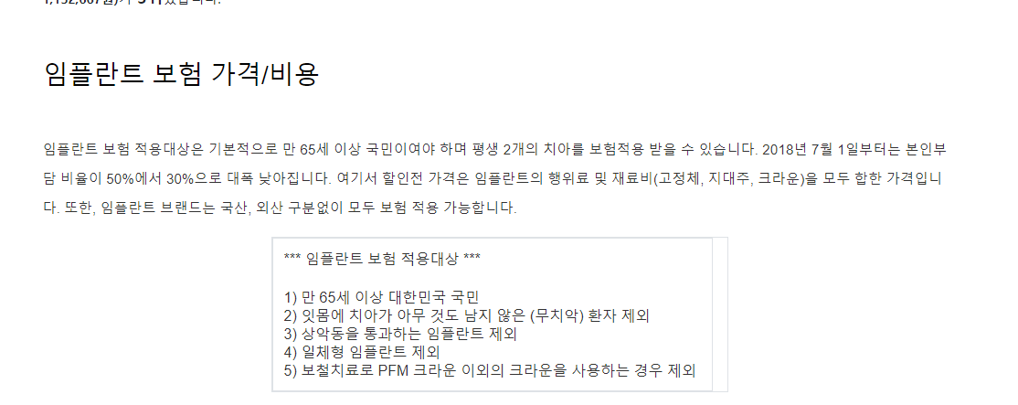 검색을 하면 임플란트 보험과 가격 비용에 대한 정보가 명확하게 나옵니다