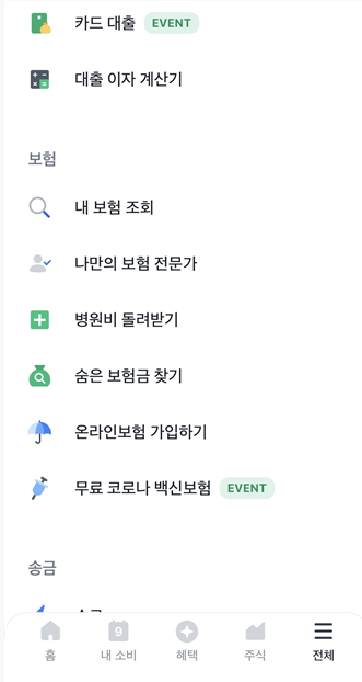 2. 그 뒤에 메뉴들을 살펴보면 숨은 보험금 찾기 메뉴가 나옵니다