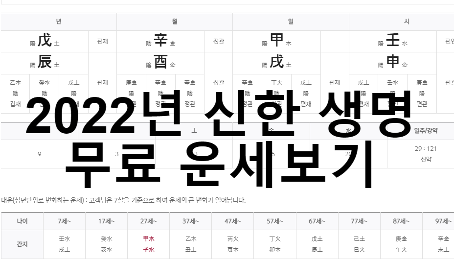 바로 아래 신한라이프 사이트로 들어가시면 운세를 무료로 정확하게 볼 수가 있습니다.