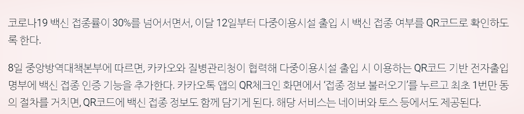 추후에는 백신 전용 QR코드 만으로 입장 가능하게끔 변경이 될 것으로 보여집니다.