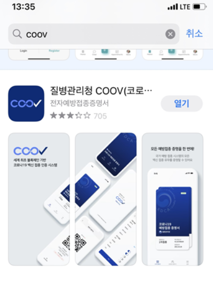 백신 접종증 전자 증명서 어플의 이름은 바로 COOV입니다