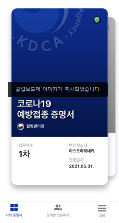 코로나 백신을 맞은 다음에 온라인 앱으로만 접종 증명서를 받을 수 있었는데요