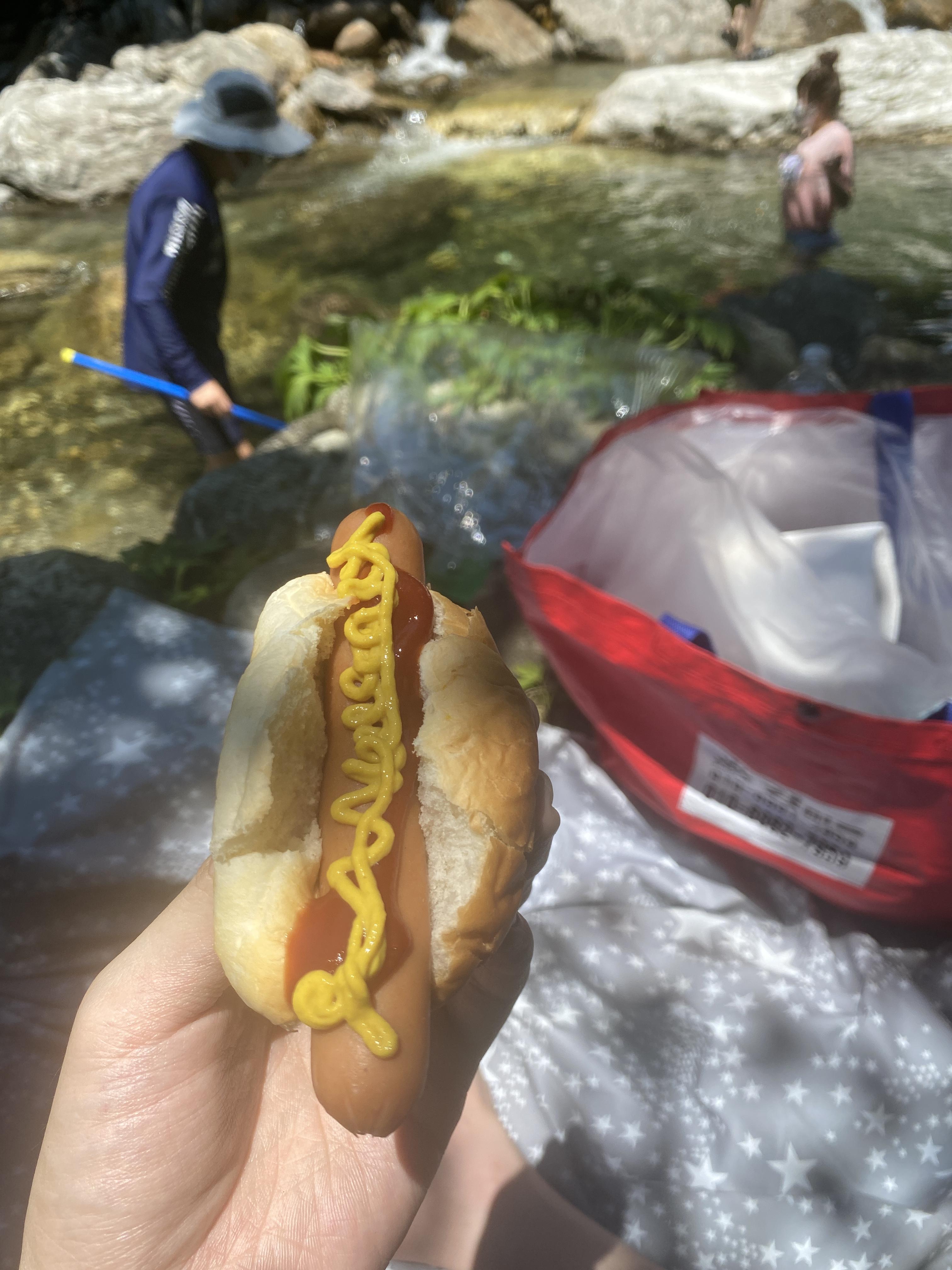 저희의 경우 취사가 안될거라 생각, 간단하게 집에서 소시지를 삶아서 돗자리 위에서 케첩이랑 머스타드만 뿌려서 먹었습니다.