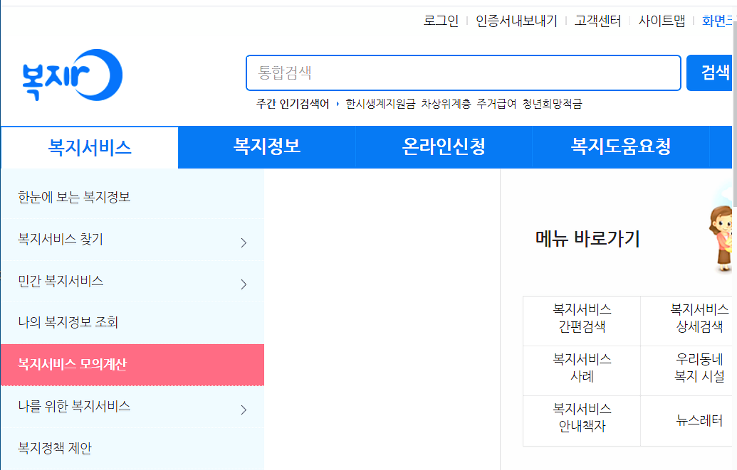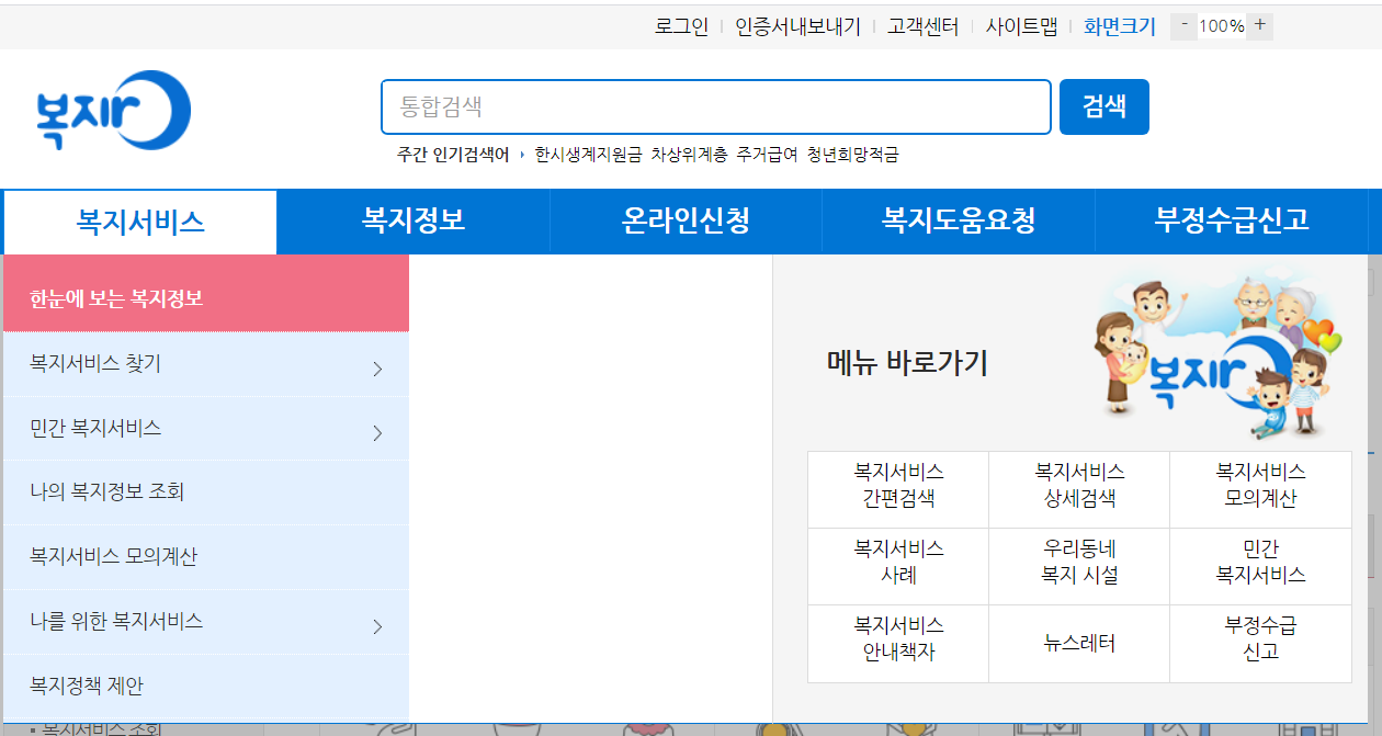 복지로 사이트에서