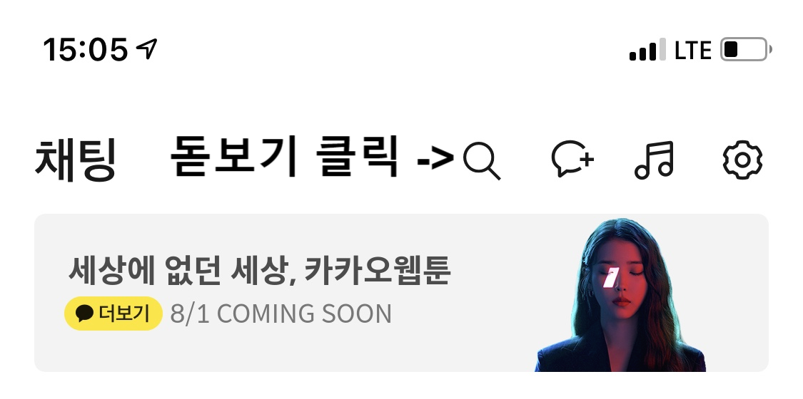 1. 카카오톡 채팅창에서 가장 위에 돋보기를 클릭해줍니다.