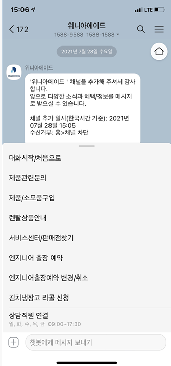 카카오 채널에서 위니아에이드를 추가하시면 카카오톡으로도 리콜을 신청하실 수 있습니다.