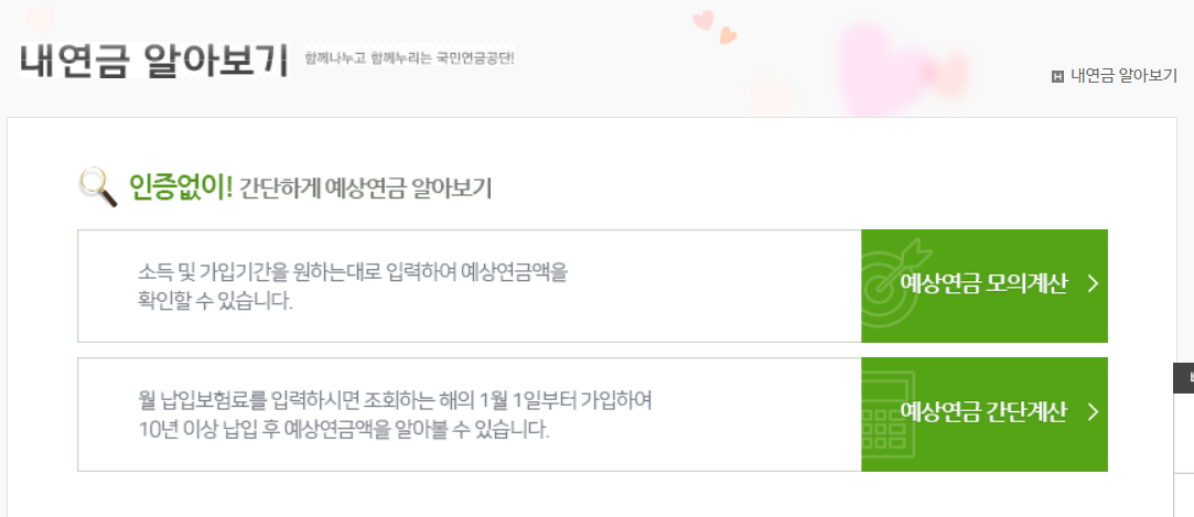 - 내 정보를 입력해서 정확한 연금 비용이 얼마인지 확인하는 방법