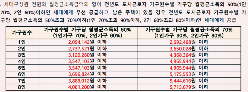 이 외에도 LH공사에서 제시하고 있는 월평균 소득에 따른 기준이 있습니다.