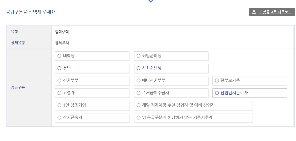(신혼 부부나 대학생, 고령자, 외에 다른 조건이신 분들은 본인에 속하는 걸로 신청하시면 되겠습니다.)
