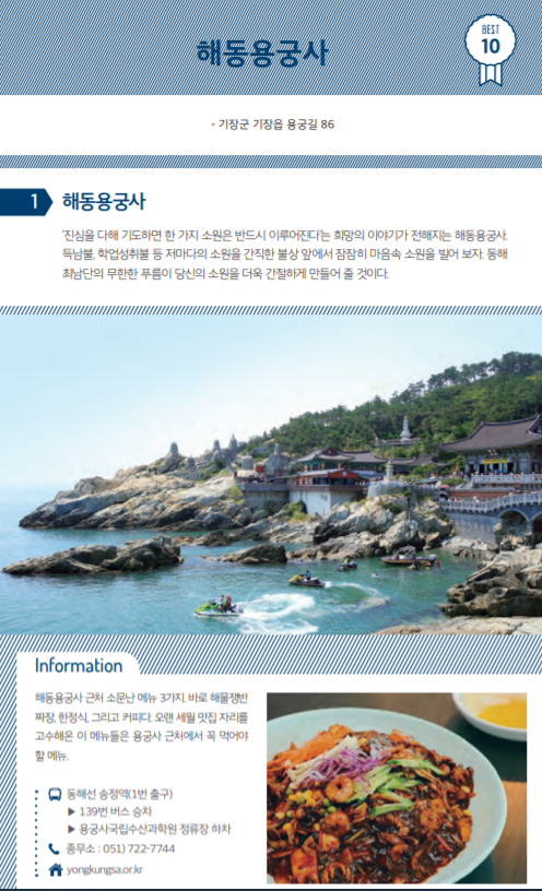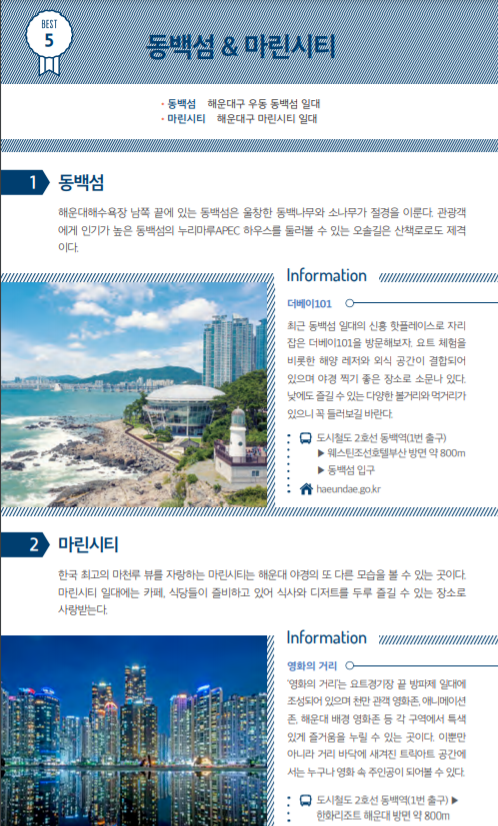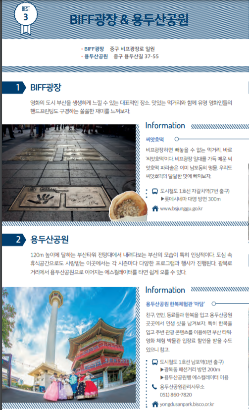 아무래도 부산시 공식 관광 홈페이지인 만큼 확실한 코스로 준비했을거라 생각합니다.