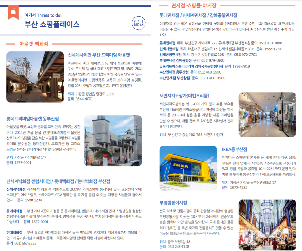추가 내용으로 부산의 쇼핑 플레이스도 있습니다