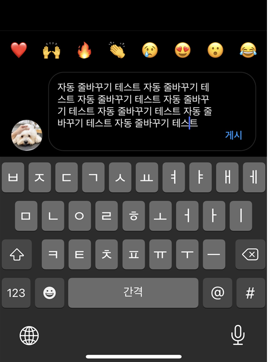 근데 인스타그램을 많이 쓰는데 글을 쓰는데 있어서 줄이 바뀌지 않아서 너무 불편했는데요.