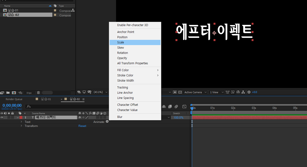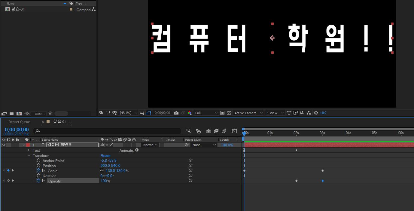스케일, 오파시티도 넣어줬습니다.