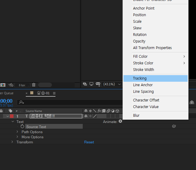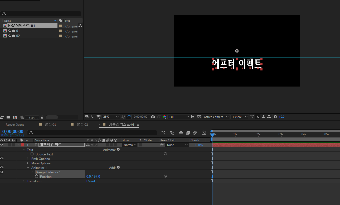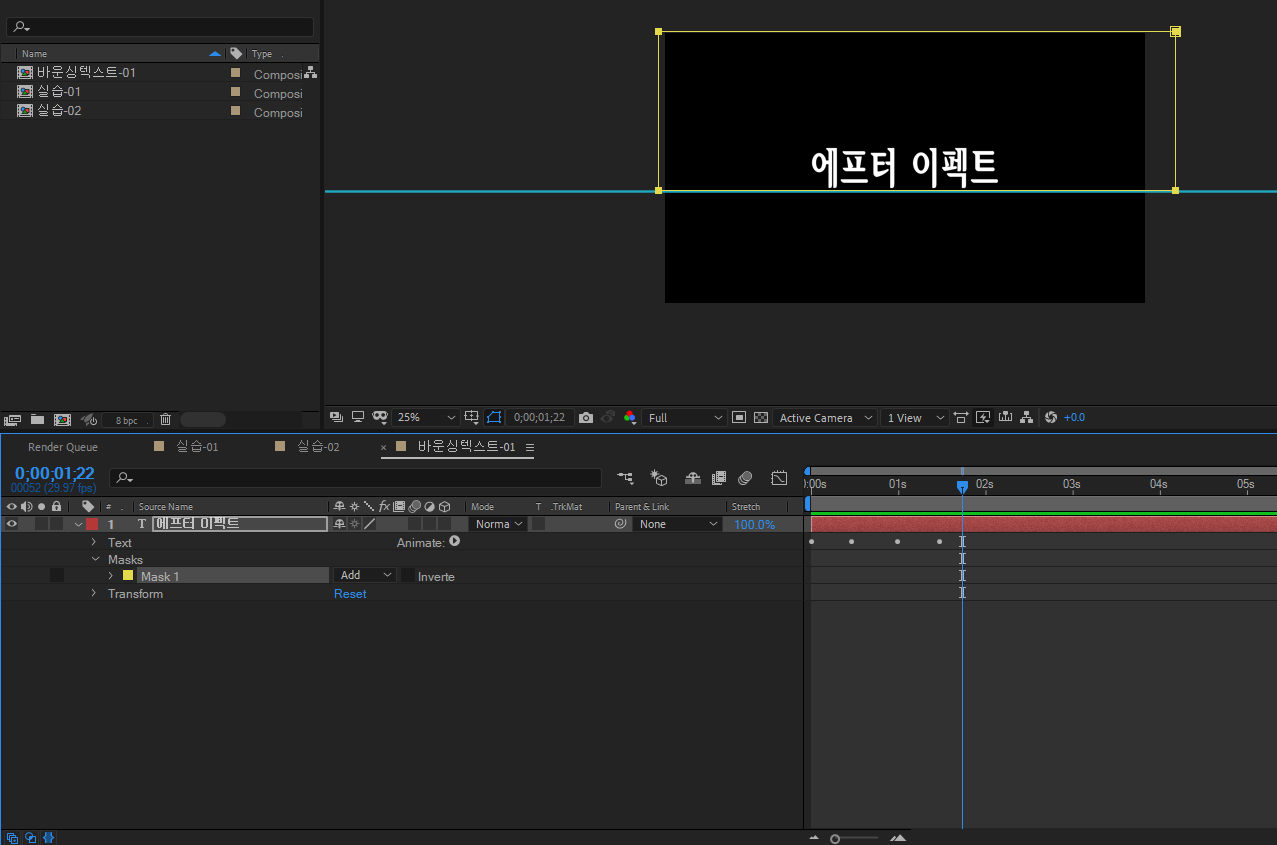 | 에프터 이펙트 형광펜 효과 펜툴, 글자 바운싱 - 8 (0) | 2022.03.24 |