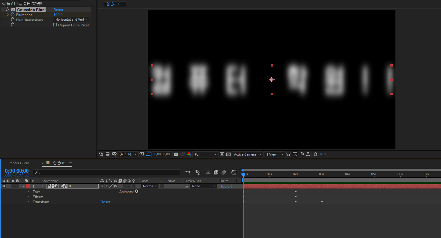 0초에 가우시안 블러 100으로 설정