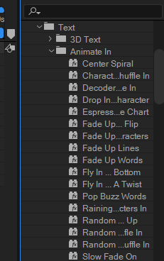텍스트 -> 애니메이트 인을 눌러주면 아래와 같이 효과들이 뜬다