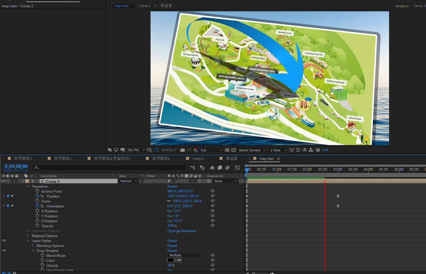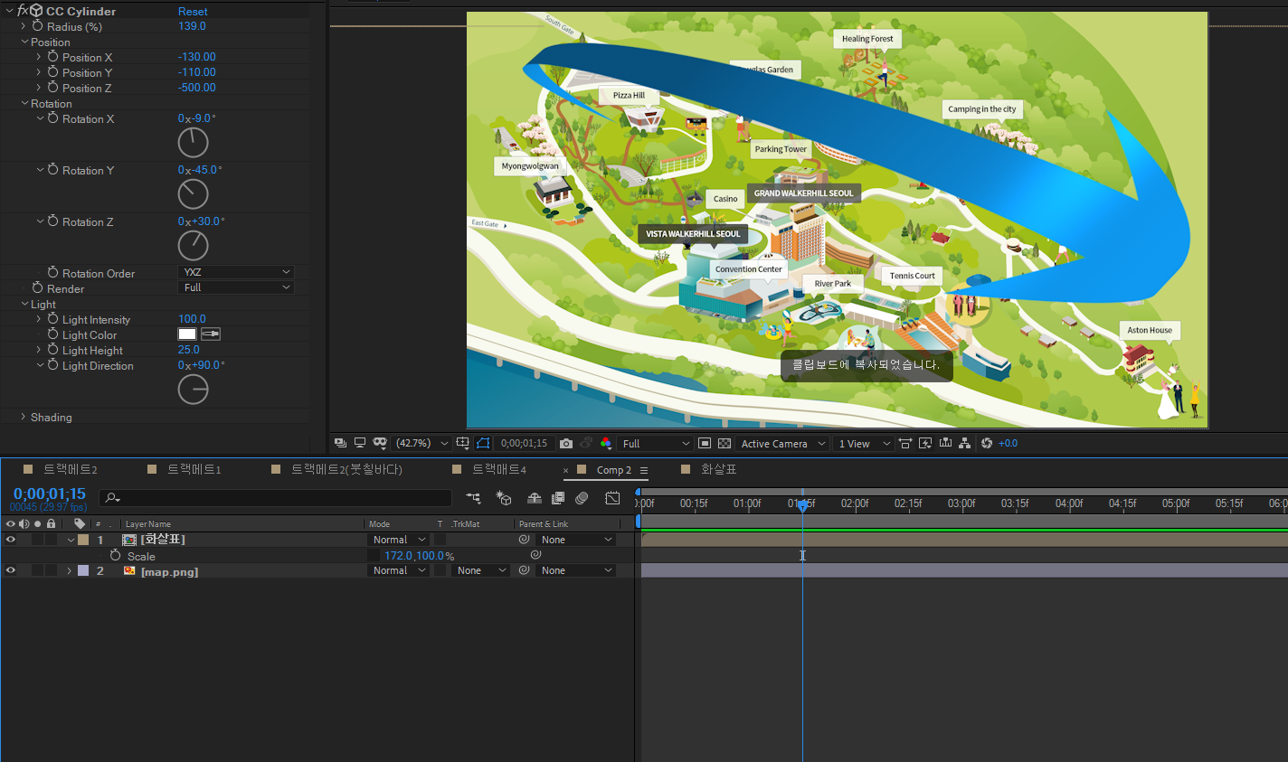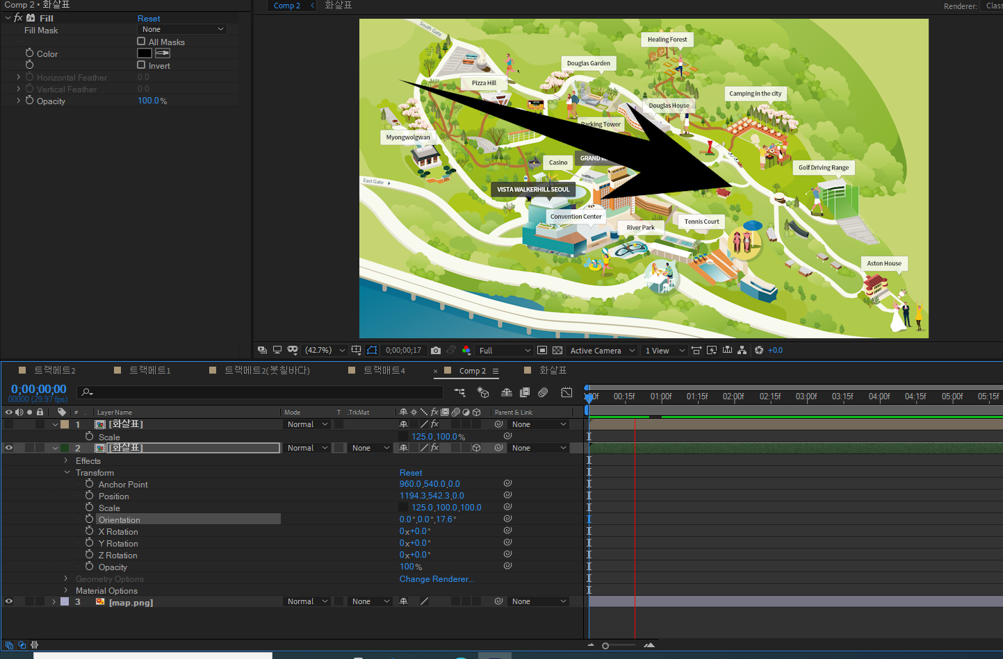 만들어둔 화살표를 맵 컨포지션에 이동시켜줌