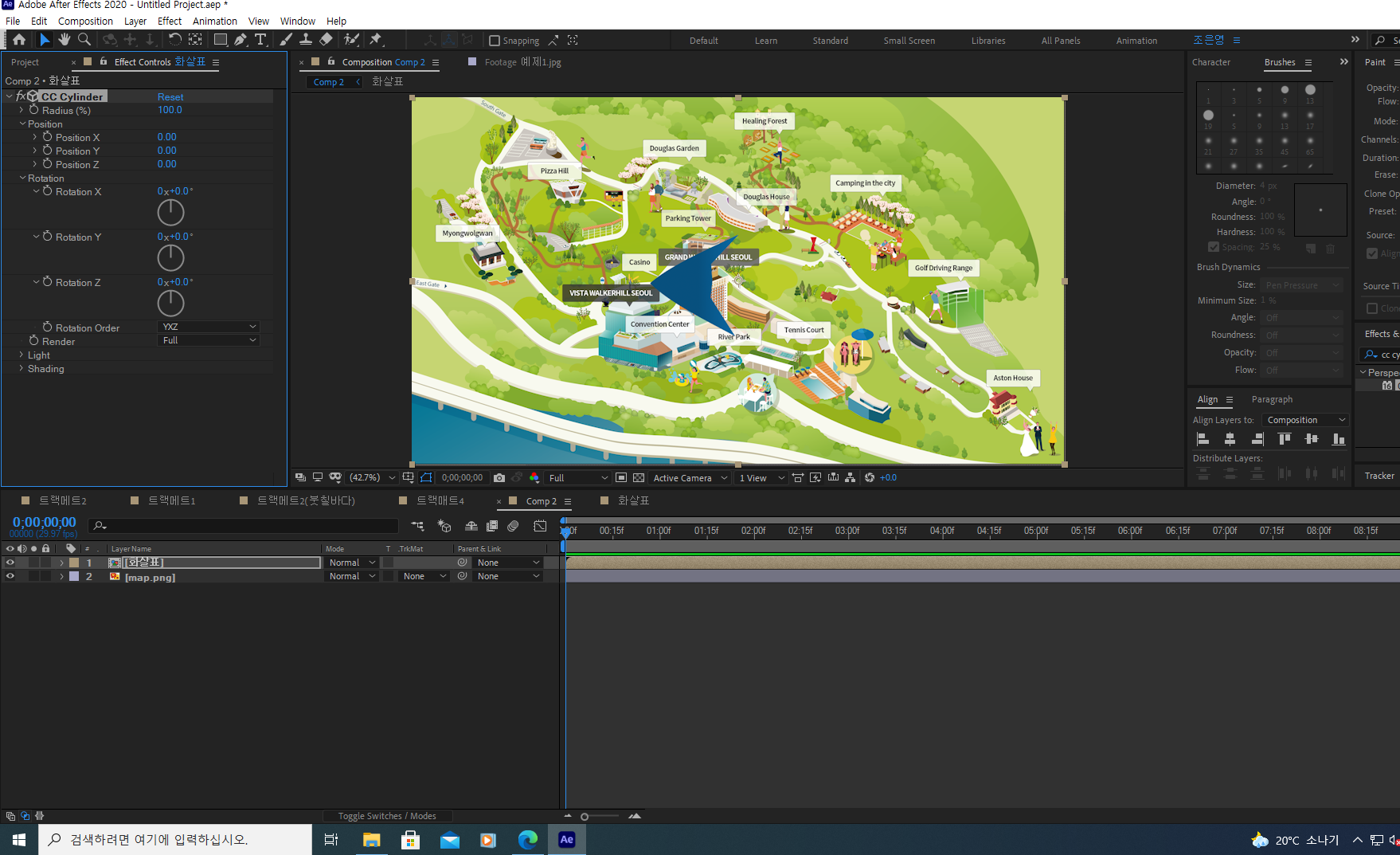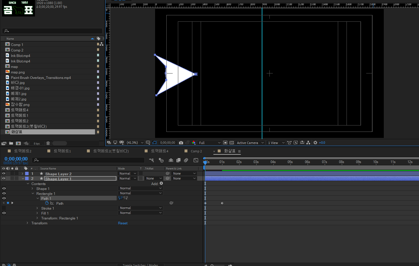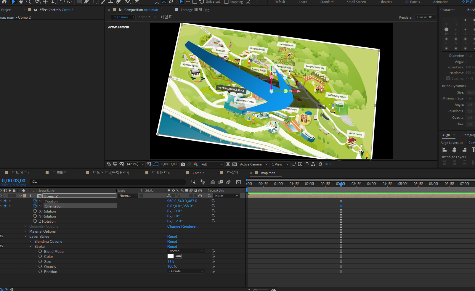 만들어둔 화살표를 맵 컨포지션에 이동시켜줌