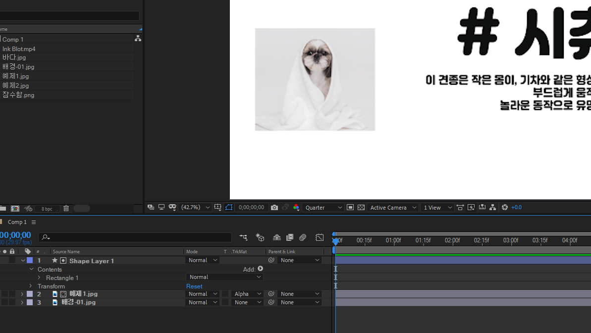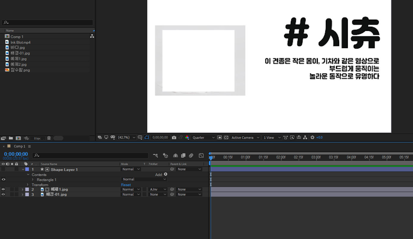 컨포지션 새로 만든 다음에 위에 걸 넣어주고