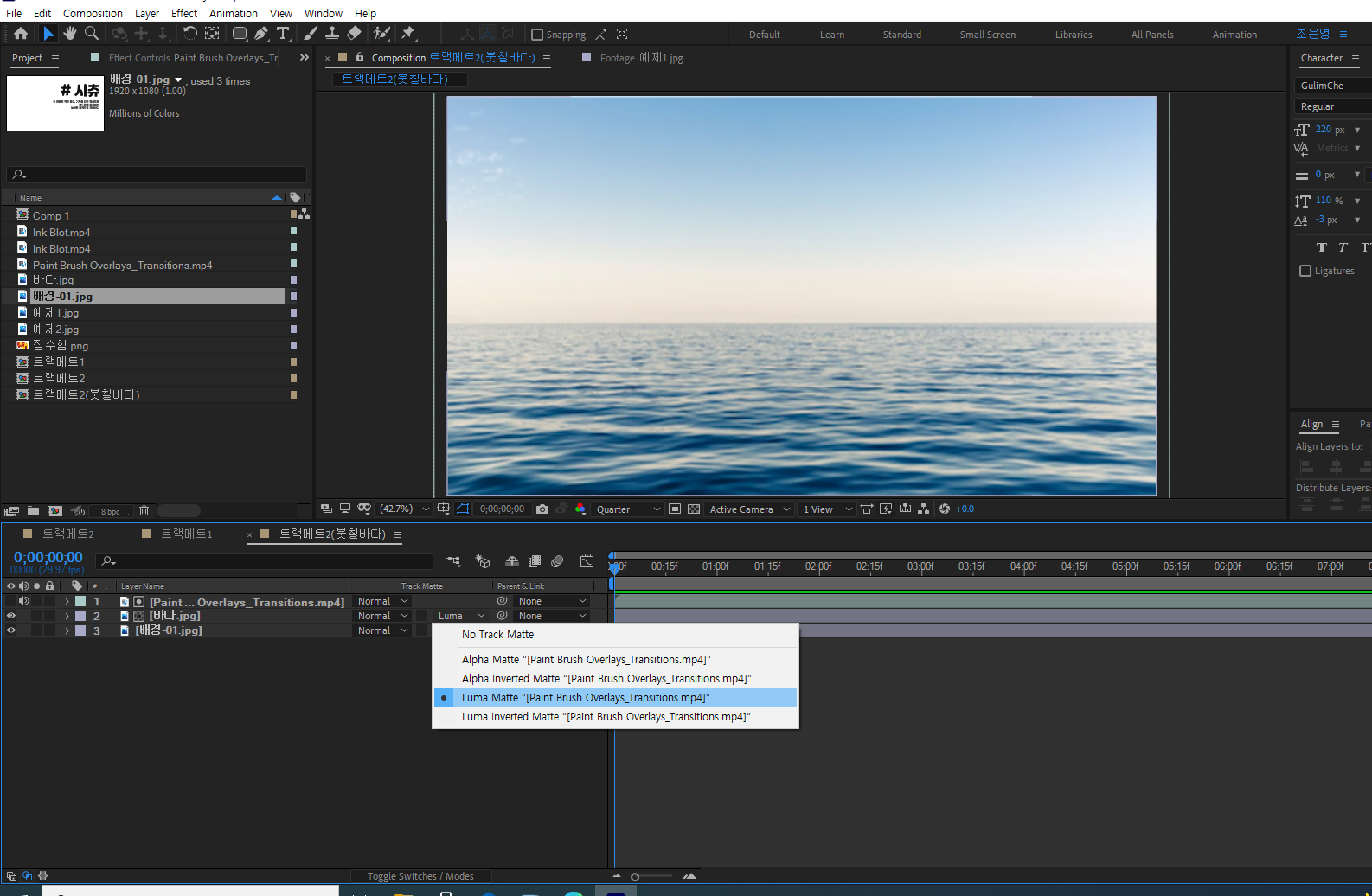 2. 바다 이미지 (트랙 매트를 루나 매트로 바꿔줘야함)