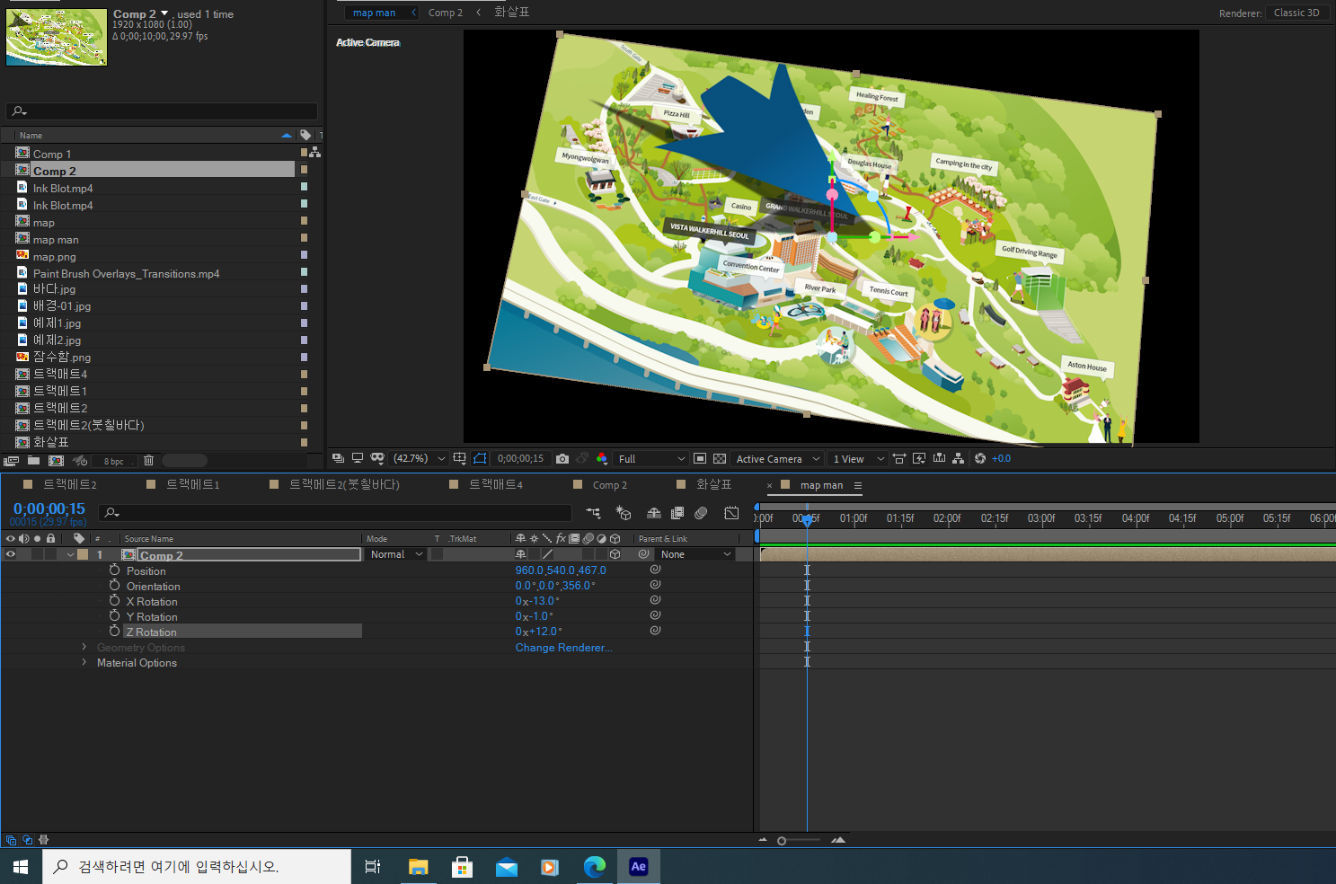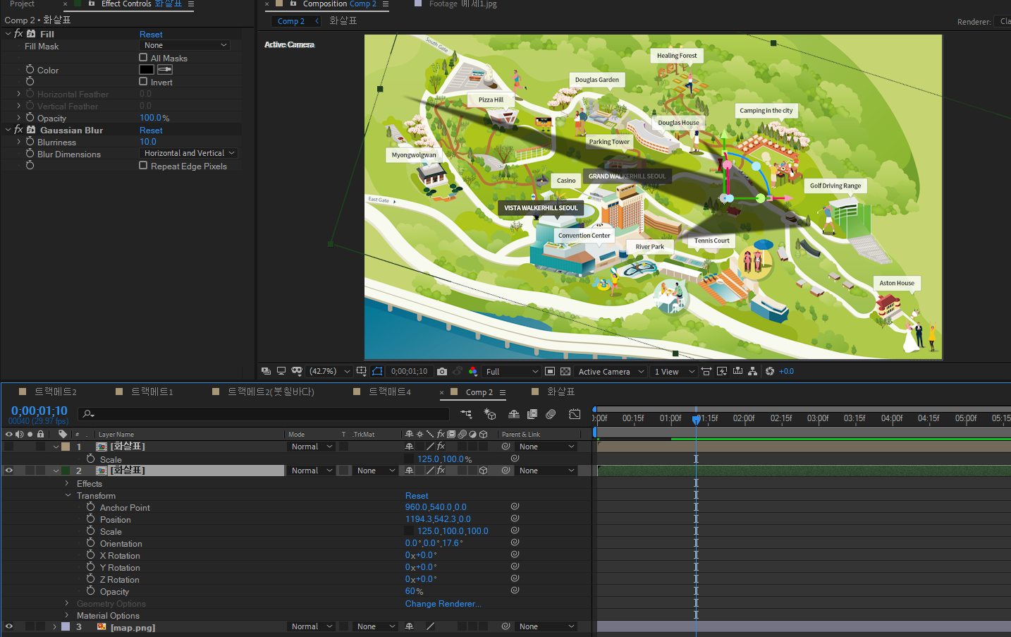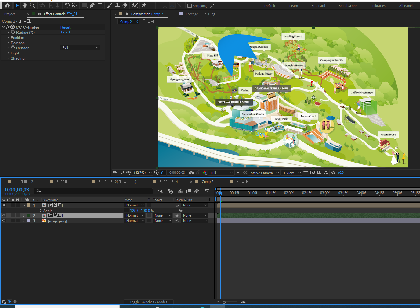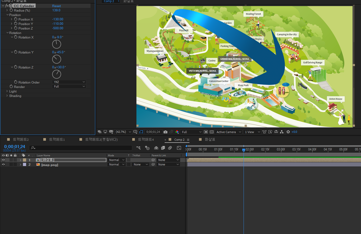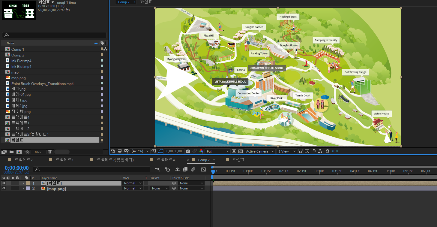 만들어둔 화살표를 맵 컨포지션에 이동시켜줌