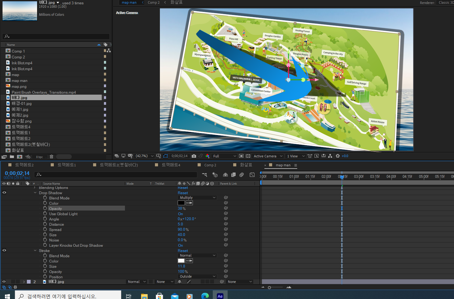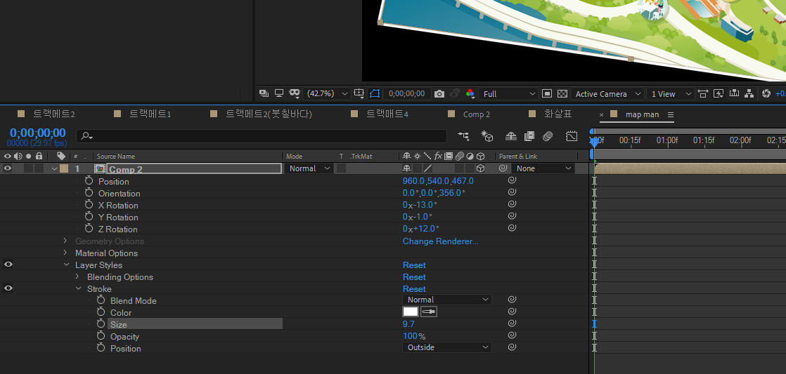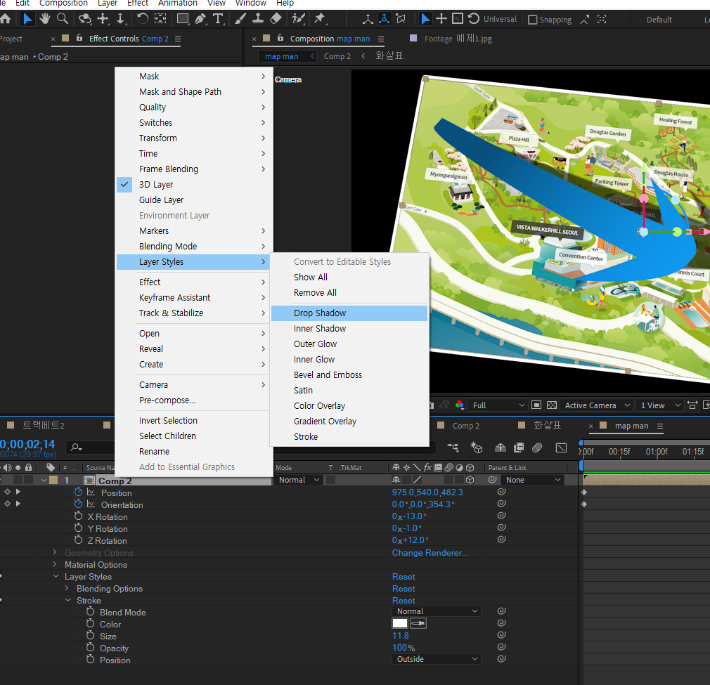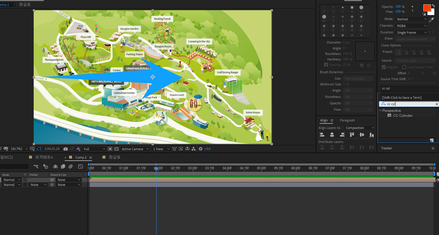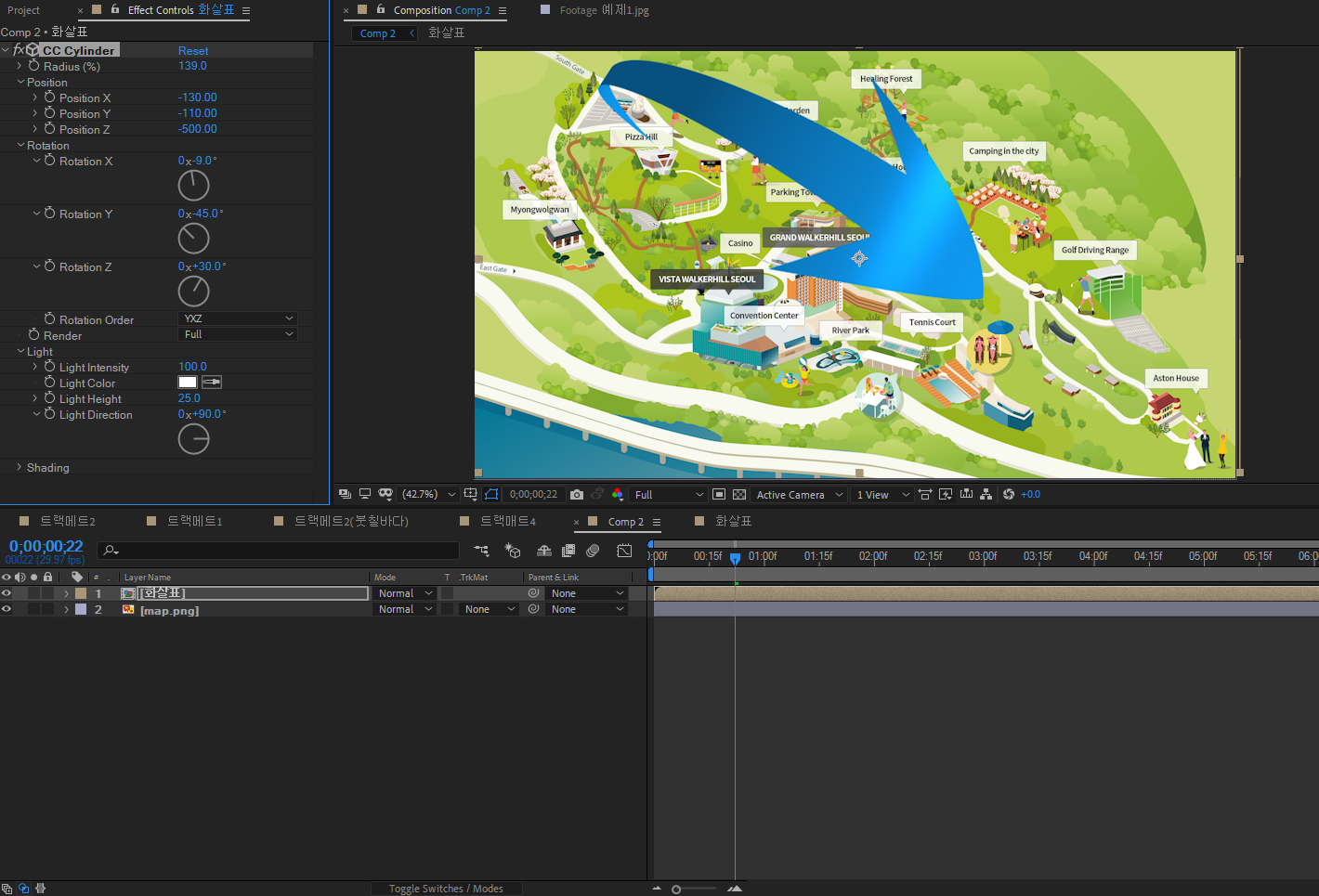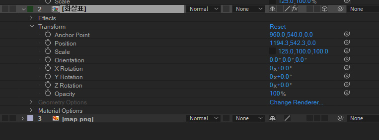만들어둔 화살표를 맵 컨포지션에 이동시켜줌