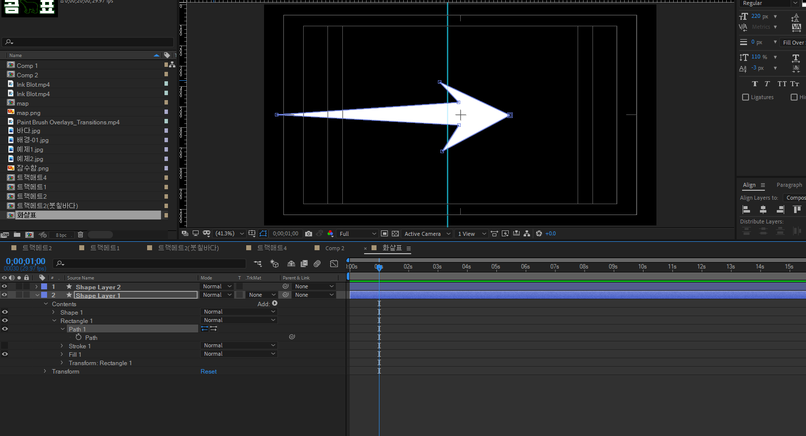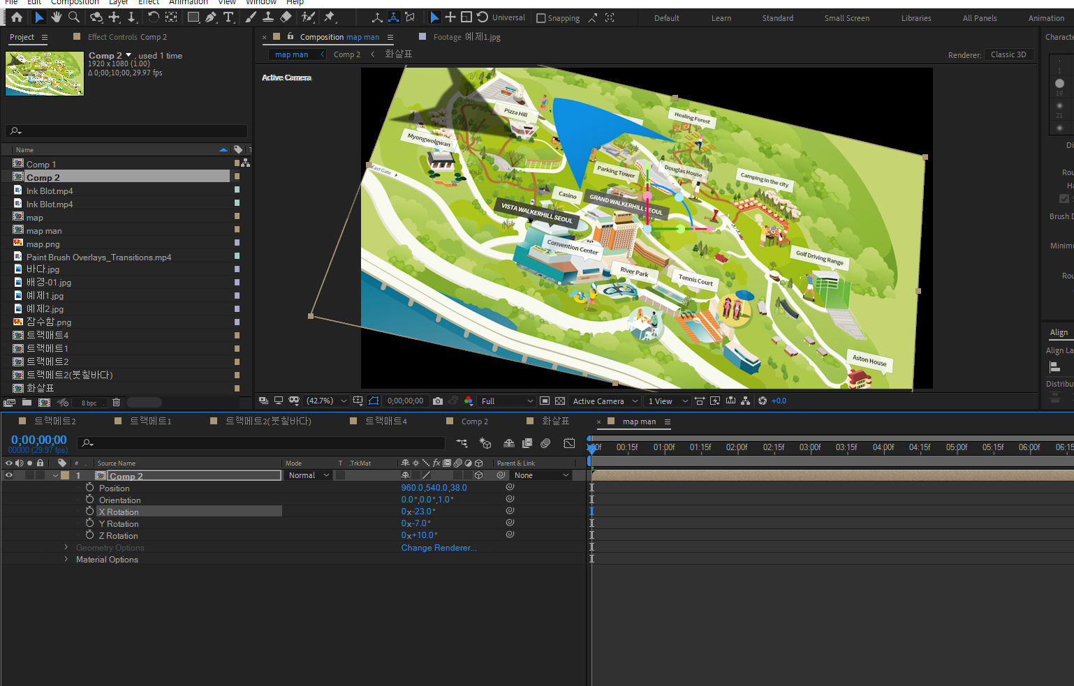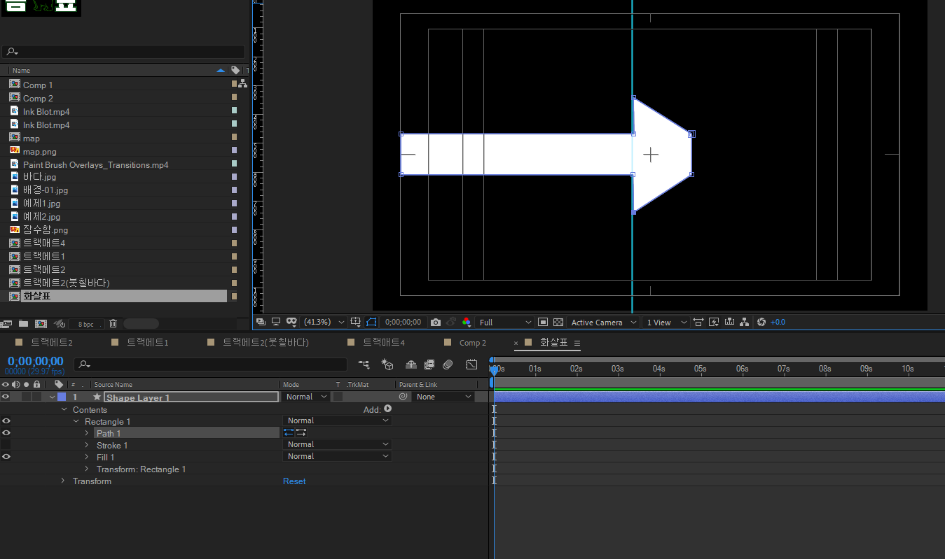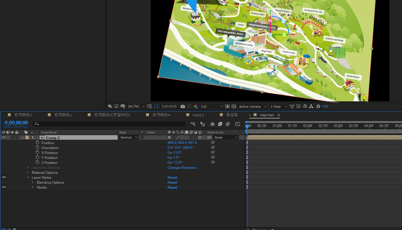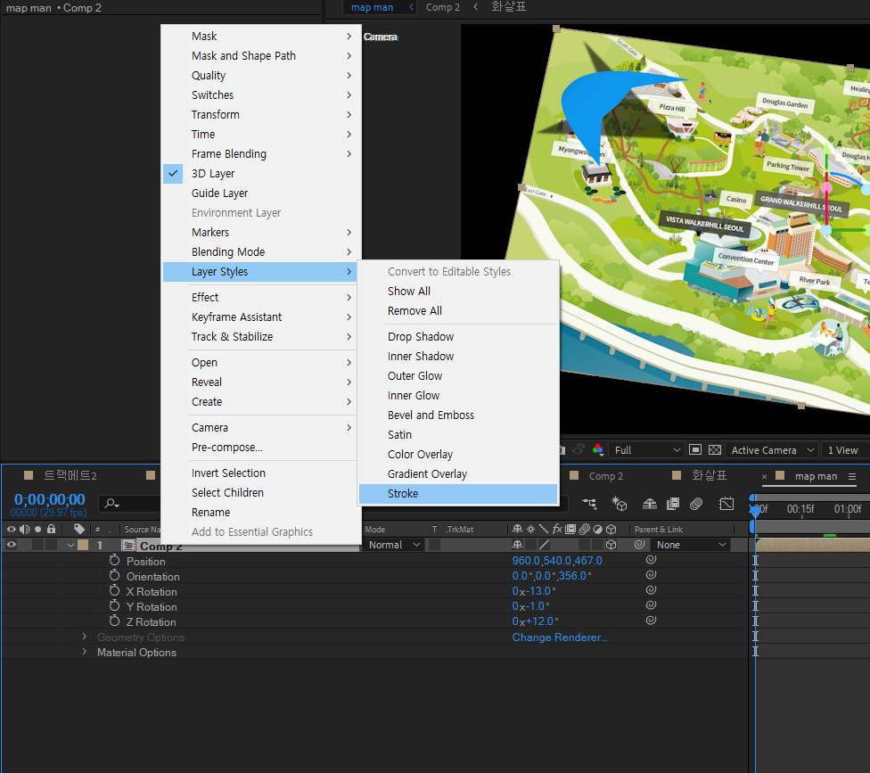 만들어둔 화살표를 맵 컨포지션에 이동시켜줌