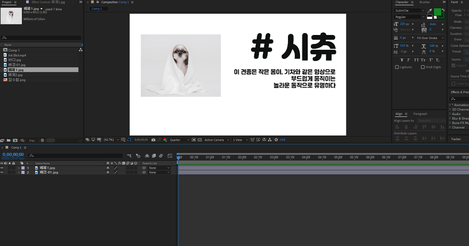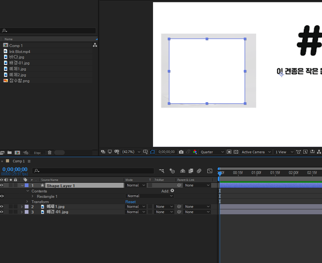 컨포지션 새로 만든 다음에 위에 걸 넣어주고