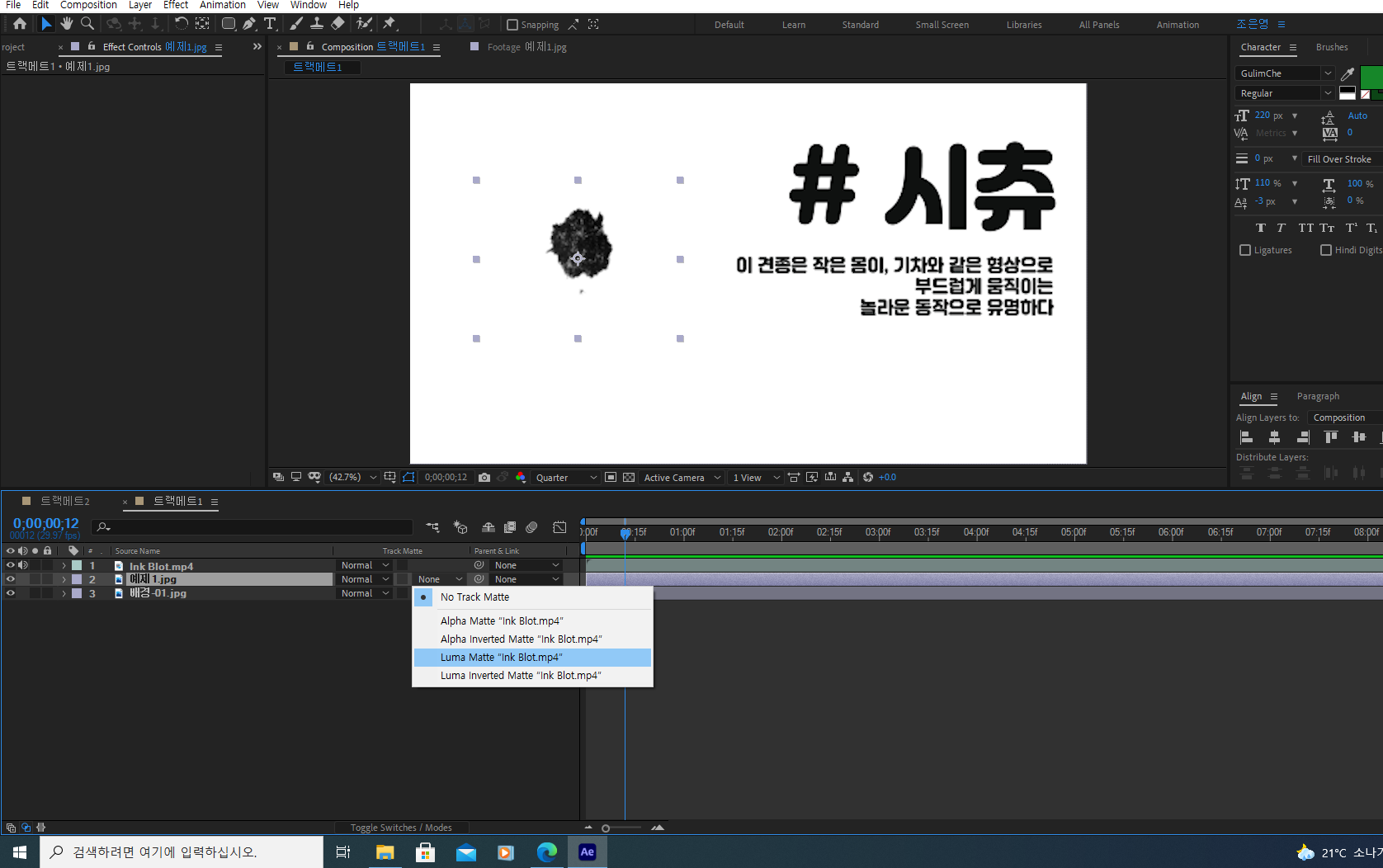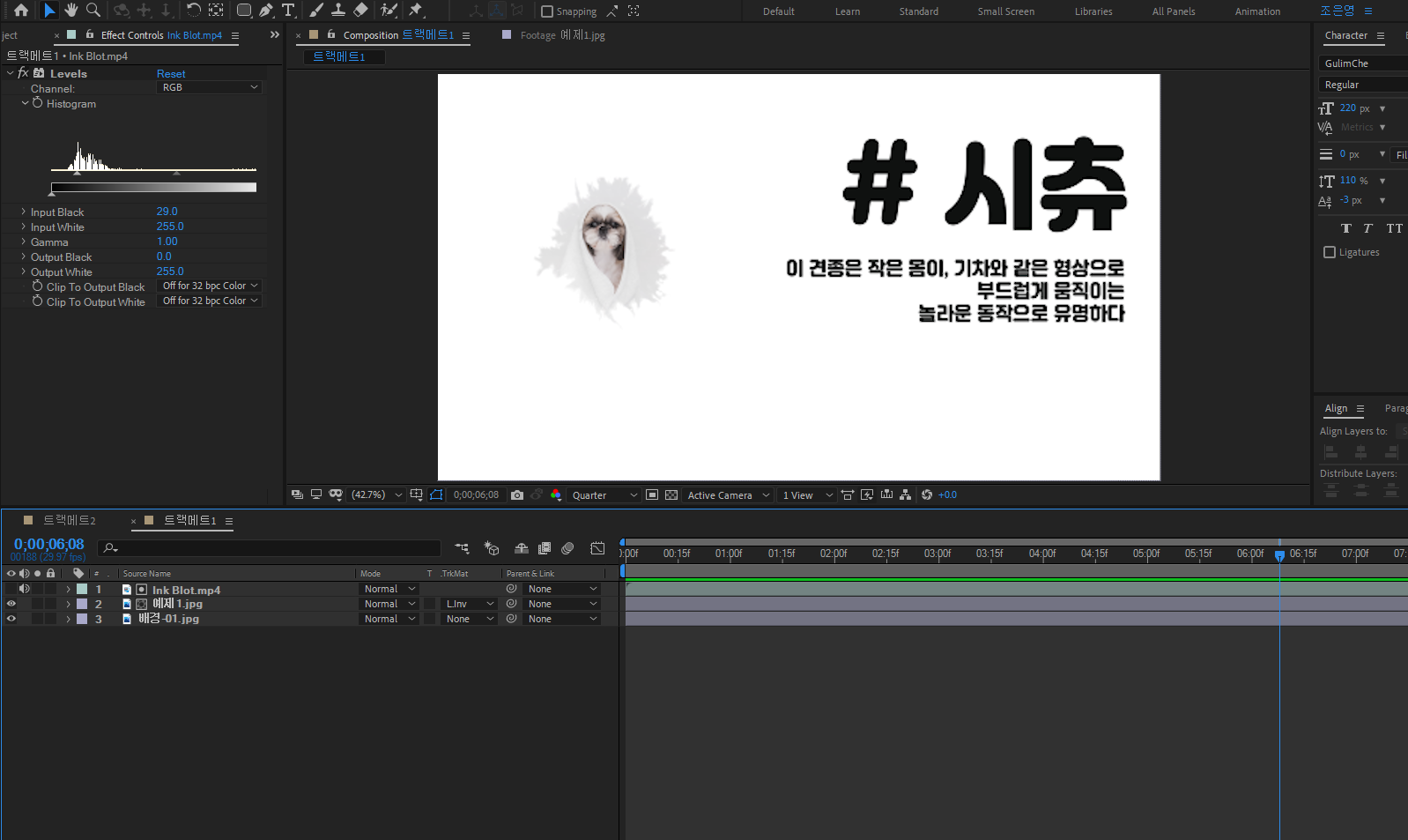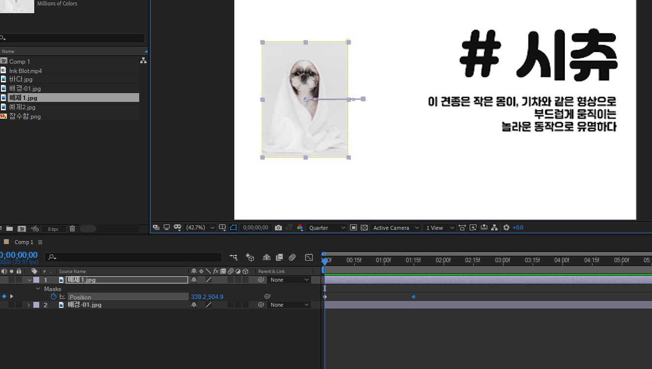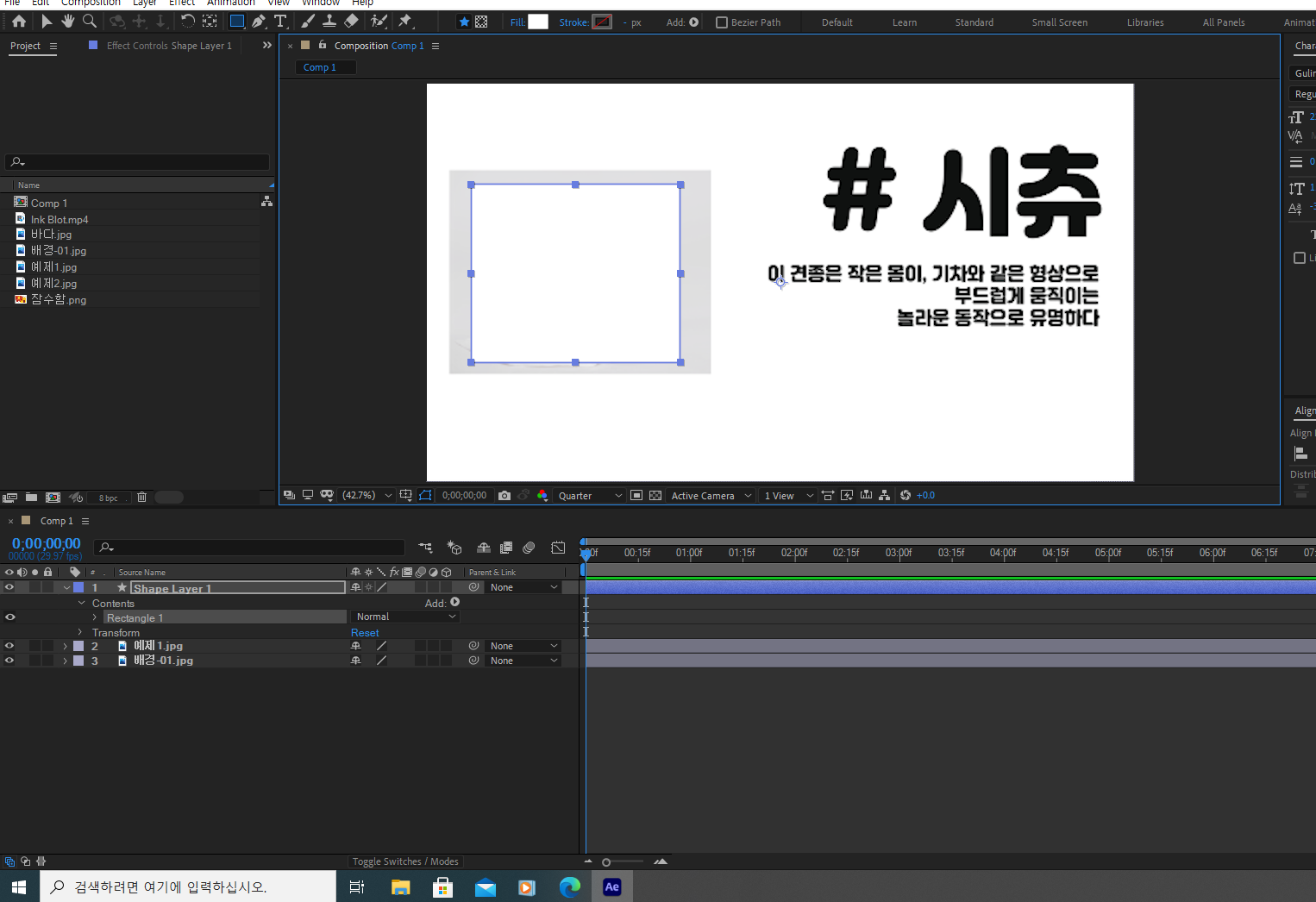 | 에프터 이펙트 네이버 검색창 만들기, 글씨 효과 주기, 붓글씨 (0) | 2022.04.04 |