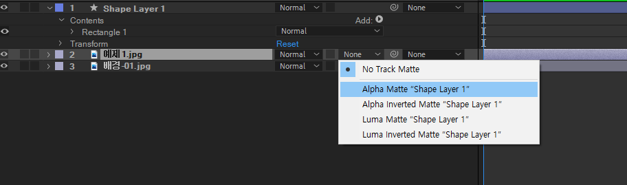 아래 쉐이프 레이어 옆에 트랙매트 를 찾는다