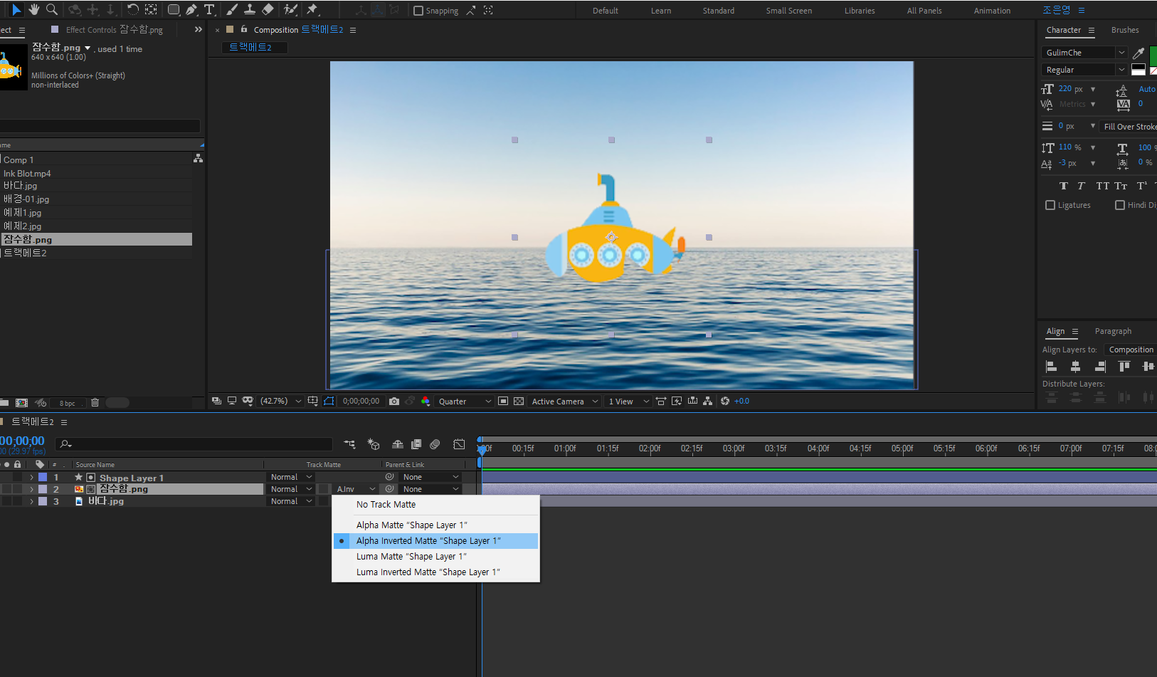 2. 바다 이미지 (트랙 매트를 루나 매트로 바꿔줘야함)