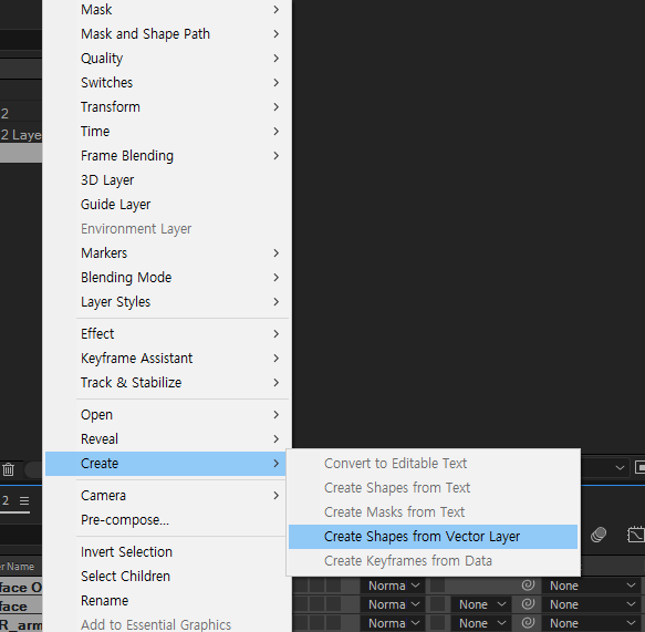 create - create shapes from vector layer 선택