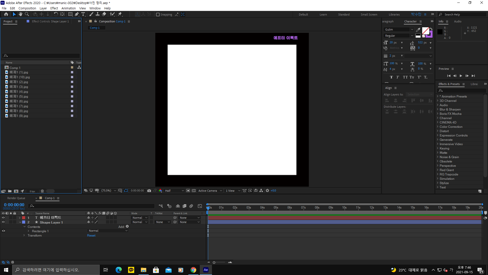 | 에프터 이펙트 네이버 검색창 만들기, 글씨 효과 주기, 붓글씨 (0) | 2022.04.04 |