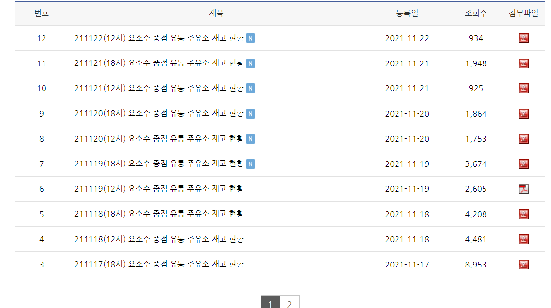 매일 14시, 20시에 요소수 재고 현황이 업데이트 되기 때문에
