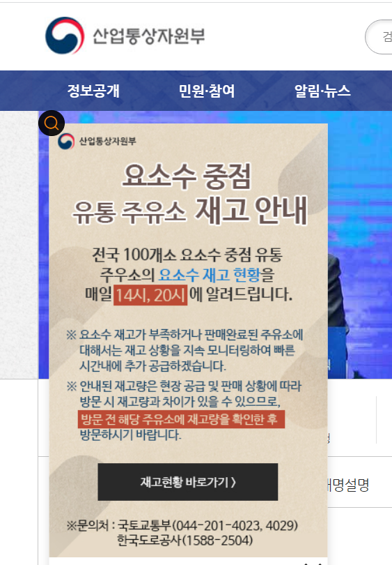 산업통산자원부 홈페이지에서도 요소수 확인이 가능합니다