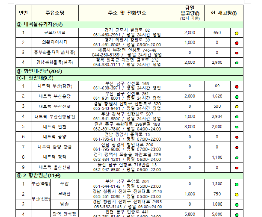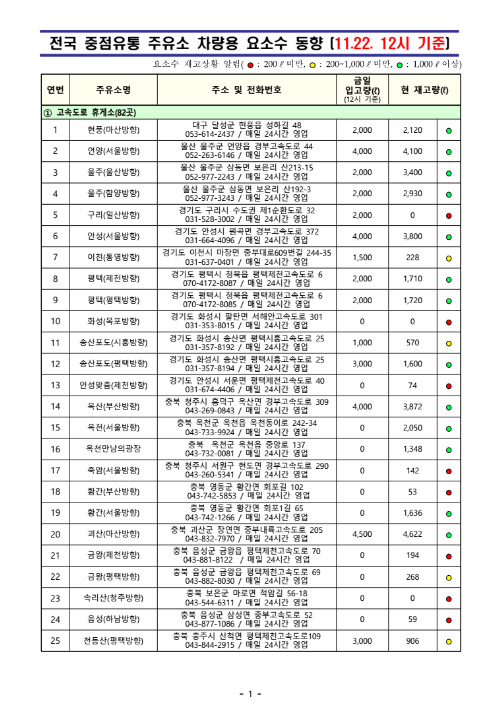해당 게시글을 클릭하면 주유소 별 요소수 재고 현황이 아주 자세히 나오기 때문에 무척이나 보기 좋습니다.