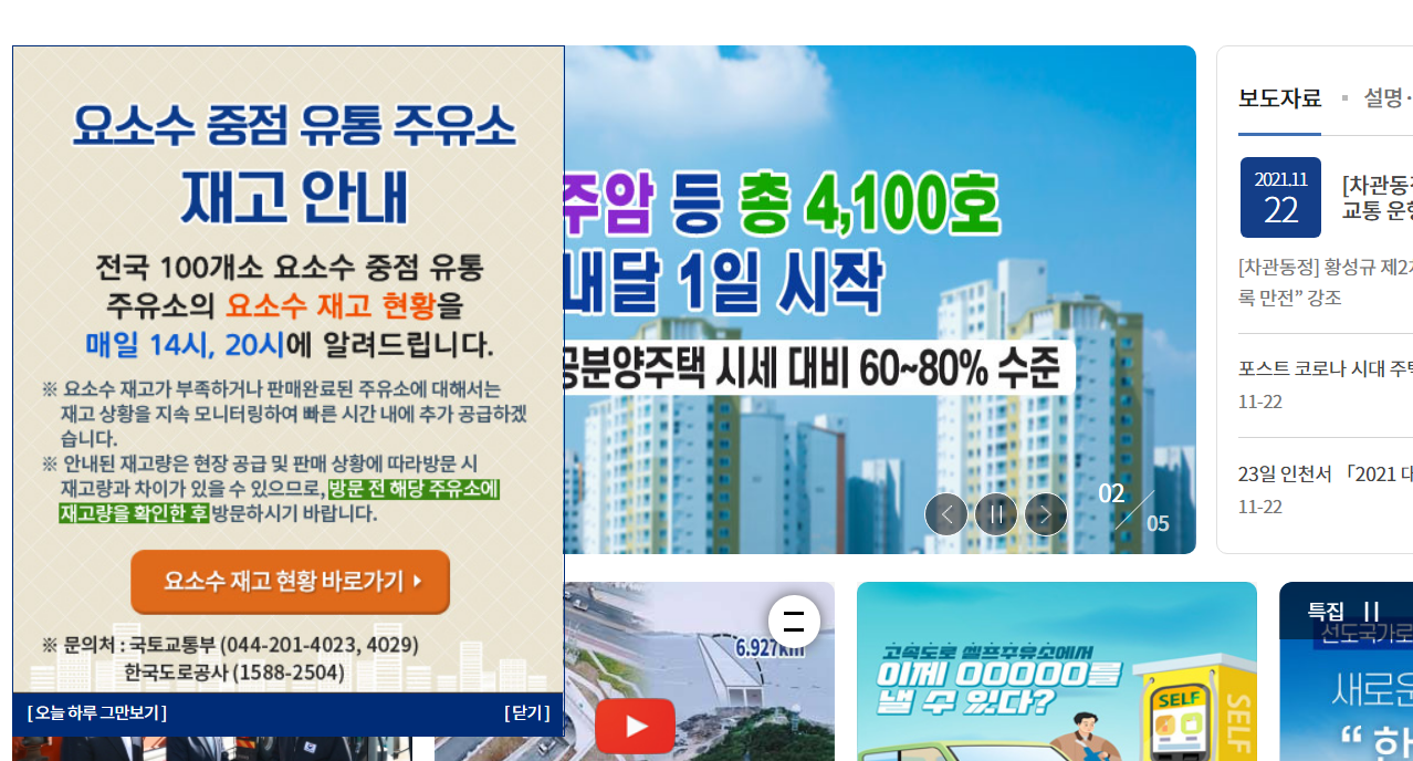 국토 교통부에 들어가면 바로 요소수 재고를 알아볼 수 있습니다.