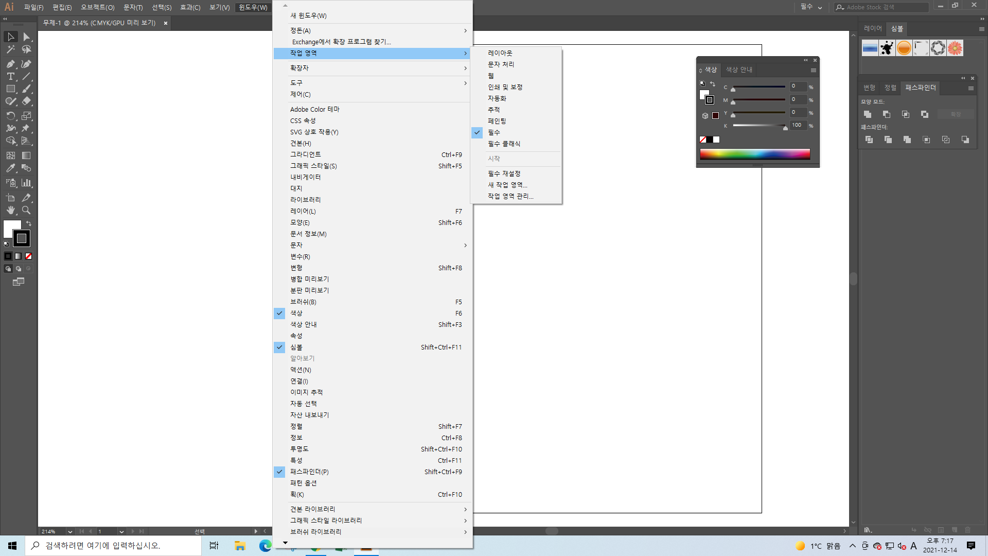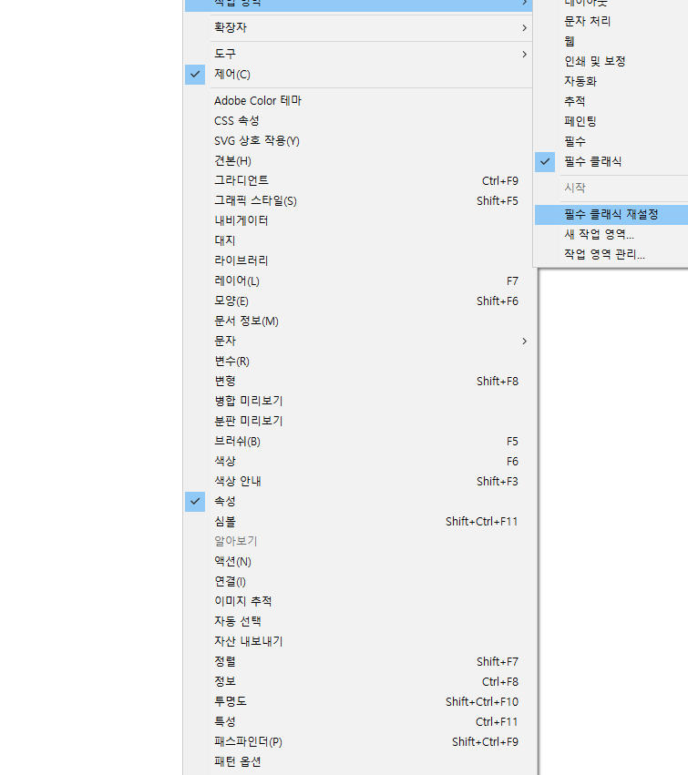 작업영역에서 메뉴 설정