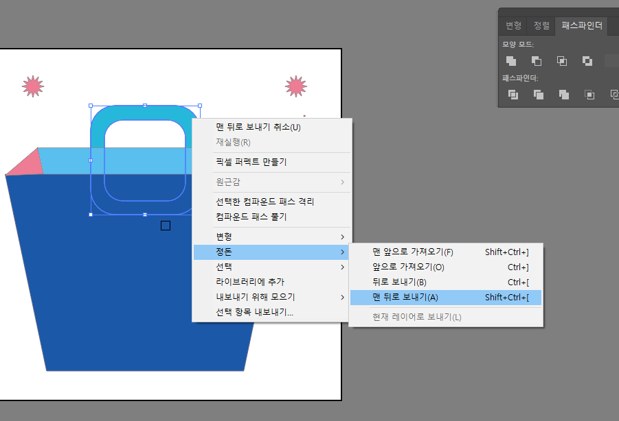 그 뒤에 이동시킨뒤에 맨 뒤로 보내기