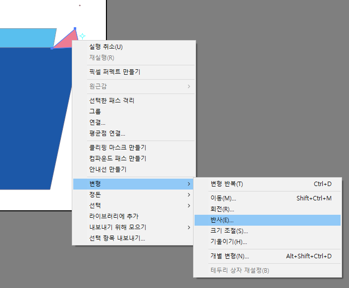 반사하고 싶은 위치에 알트 누르면서 클릭해야함 (알트 누르면서)