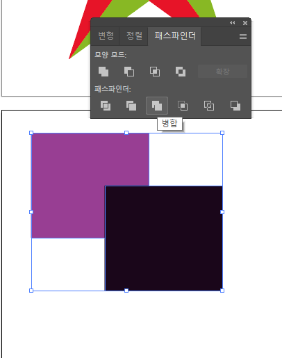 두개였던 도형을 패스파인더로 하나로 합쳐줄 수 있습니다