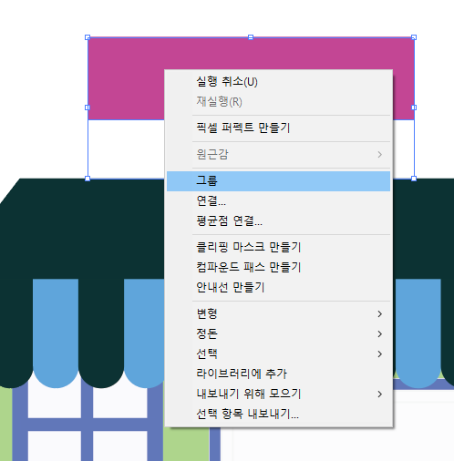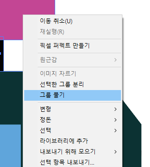 그룹을 지어주면 도형이 하나로 지정이 된다