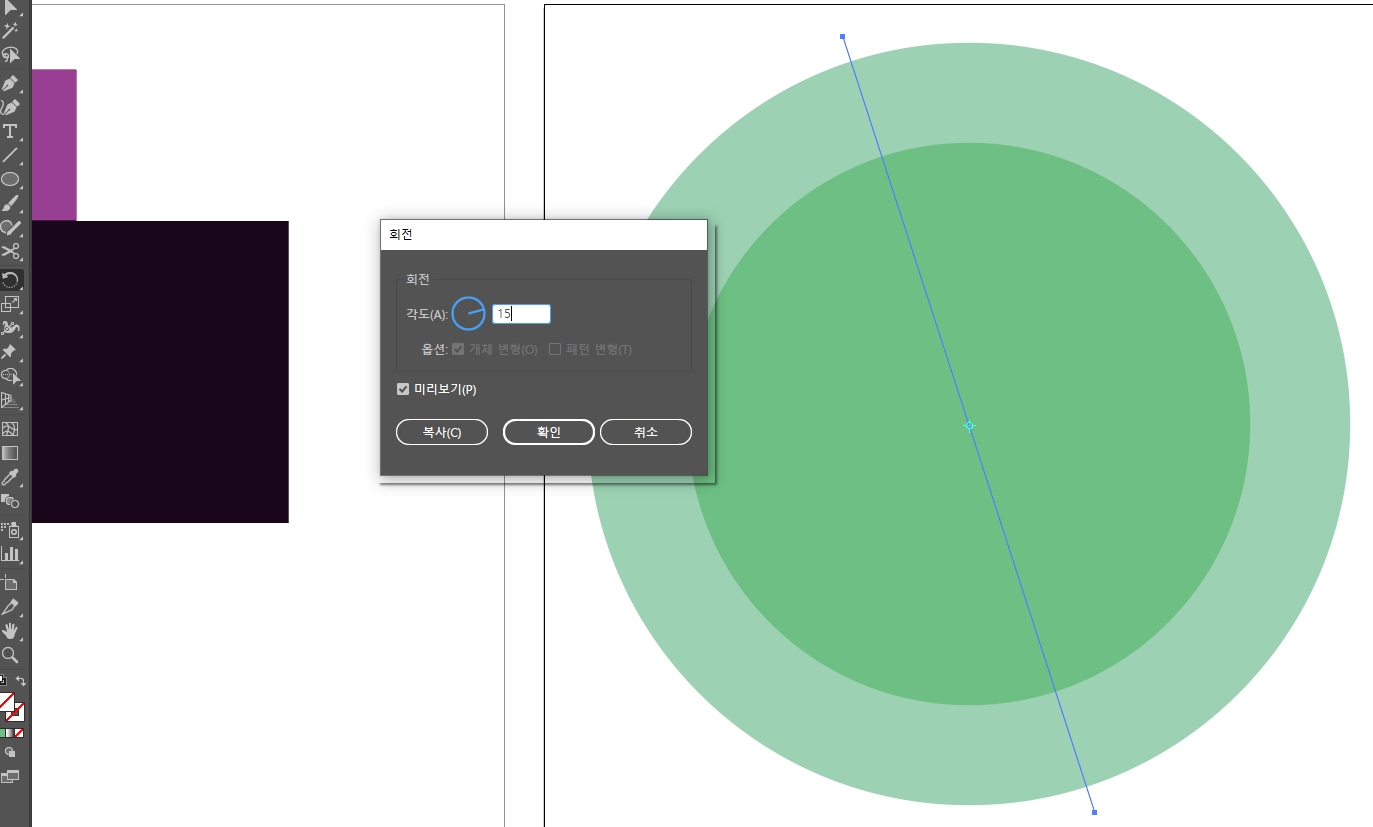 회전 더블클릭 하고 15도