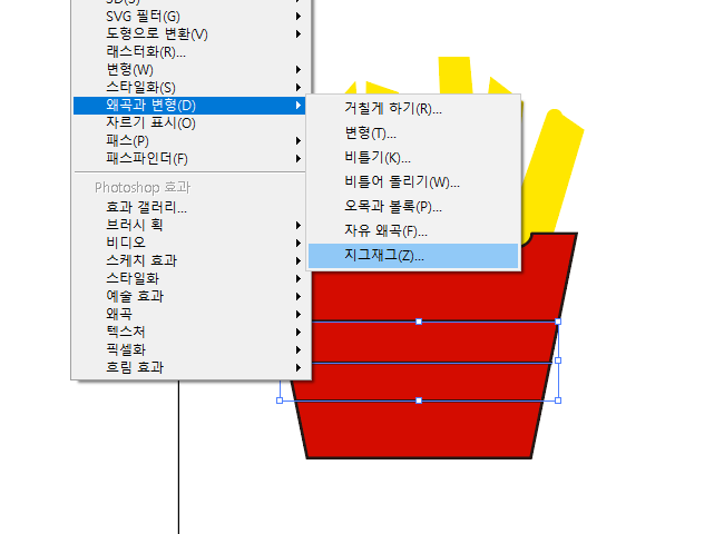 선을 그려준 다음 왜곡 효과 - 지그재그