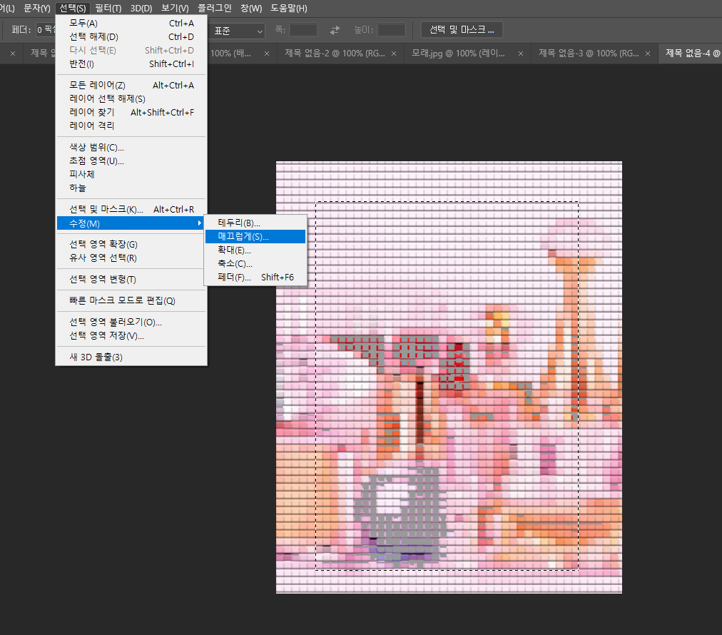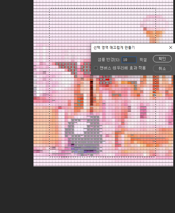 이때 네모칸을 동글게 만들어 주고 싶으면 선택 -> 수정 -> 매끄럽게 (10정도)